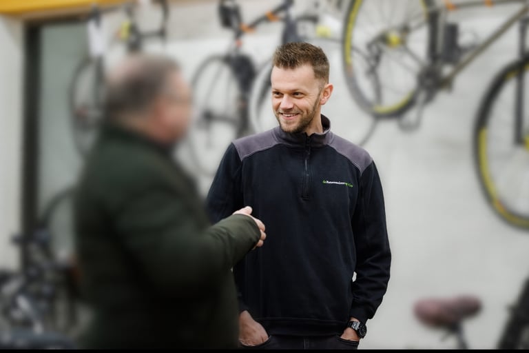 Ongeacht de grootte van ons bedrijf, kiezen we er bewust voor om de fietsenmaker op de hoek te blijven waar mensen makkelijk binnen stappen, ook voor de kleine dingen.